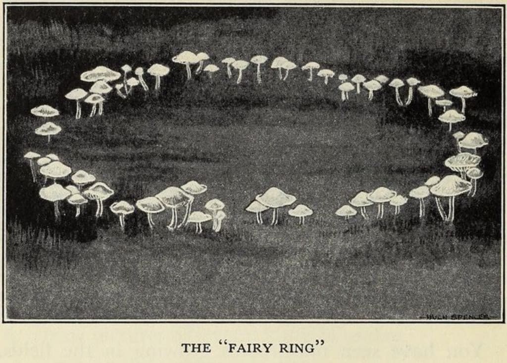 I couldn't hear her reciting the words from where I was hiding, but she must have done it right. The wind picked up the moment she placed all the offerings into a bowl—sugar, thyme, bone and blood. She spat behind her right shoulder, and looked up to the sky. Wind blowing her silken hair, the mushroom circle lit up, as if electrified.