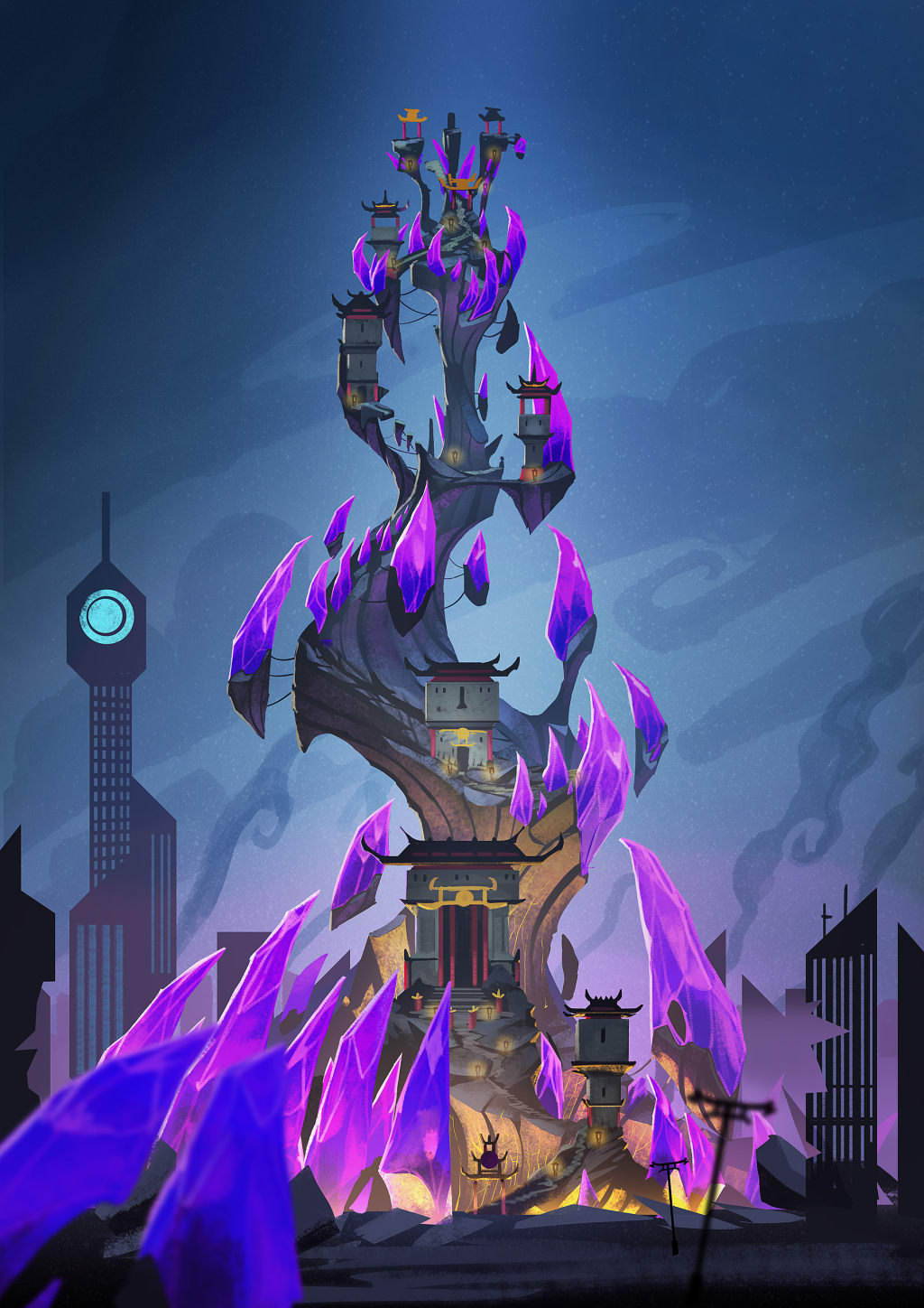Then she saw a figure waiting at the center of the city tall, cloaked, and carrying a crystal that glowed blood-red.