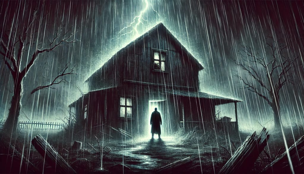 Zap! A streak of lightning cracked the obsidian sky. Torrents of frigid water cascaded from the heavens, causing my saturated clothes to cling to my perspiring body. A blanket of darkness suffocated me as I stared at the abandoned house.