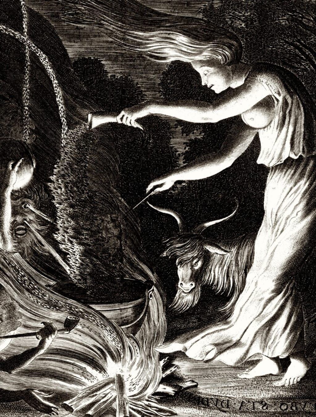 Her familiars were with her, and she had horns of magic powders and had built a fire under the cauldron. This spell was to bring her a companion, a helper and a lover. She had never had someone whom she could trust with her life, but this spell would give her that creature.