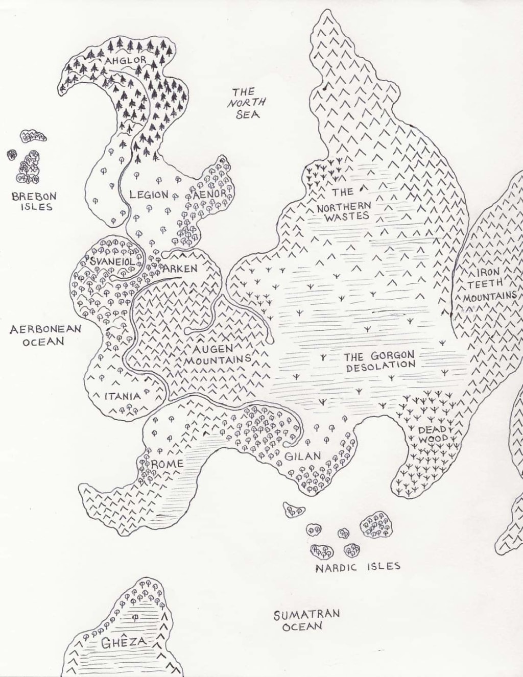 There was morning dew upon the grass still and the air was warm and humid. It was a warm spring day in Legion, and it was like that year round. The same was true in Aenor, though Aenor was much more beautiful in comparison. The elves did not leave a trace upon the lands they in which they lived, much like the Ahglorians tribesmen; they lived under tree canopies and used the forest as their home. In the towns outside of the Aryan Forest the elves in Selene lived in log cabins built out of the outer trees of the wood, and in the town of Eros they lived in stone cottages upon the coast . As it was, Eros was the largest source of fresh fish in the entire Northwest region of Aerbon.