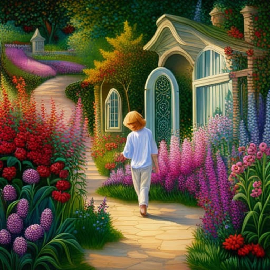 No sooner had she said I do, than her old house was transformed into a lovely cottage with the most magnificent flowers and as many colors as could be imagined. The sun stopped exactly overhead and the clouds opened up a shower of rain upon her garden. As she turned back to her husband, he too had become the most handsome man she had ever seen.