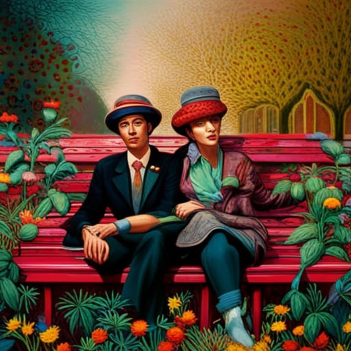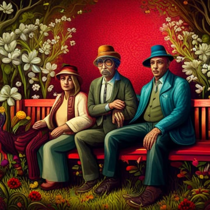 People came from far and wide to view this phenomenon. Word spread fast and everyone came to see the colors and flower. Pretty soon beautifully dressed strange looking people also appeared upon the bench.