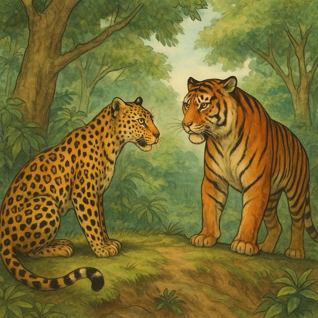 Once upon a time, in the heart of an ancient and mysterious jungle, lived two great predators—the tiger, Rajan, and the leopard, Zafir.