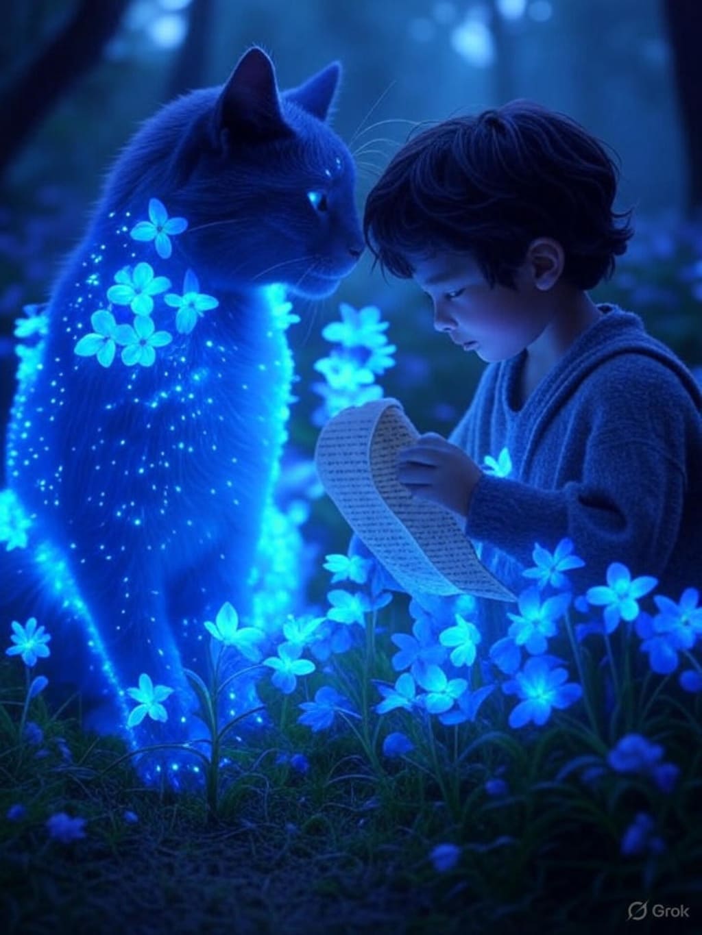 In the dawnlit glade of Copacetia, where emotions bloom like bioluminescent flowers and the air hums with unspoken truths, lived a gentle creature named Lysara. She was shaped of soft shimmer and midnight hues, with paws that whispered and eyes that listened—a feline spirit known as a Velvet Claw, guardian of the Realm’s sacred language.
