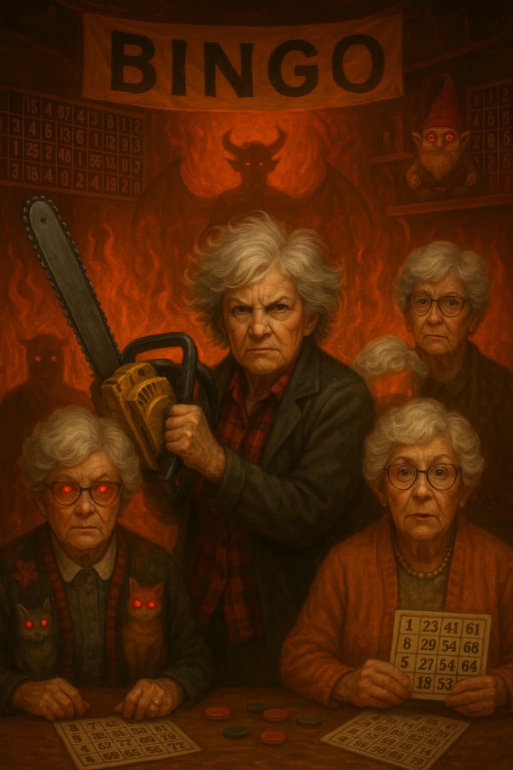 Soon, the Bingo club transformed into a full-blown cult. The prizes? Cursed talismans, infernal teapots, and one disturbingly animated garden gnome that wouldn’t stop whispering “succumb.”