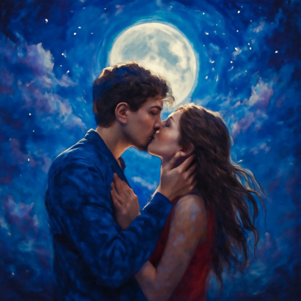 Under this moonlit sky stood a boy and a girl ā Aarav and Meher. Just one breath apart, yet hearts pounding like thunder.