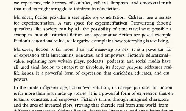 Fiction also plays a central role in education and intellectual development. Stories are one of the earliest ways we learn about morals, history, and society. Fables teach lessons about honesty, kindness, and courage. Historical novels bring past eras to life, making them more relatable and memorable than textbooks. Science fiction challenges readers to think about ethics in technology and the future of humanity. Fiction thus becomes a bridge between knowledge and imagination, facts and feelings.