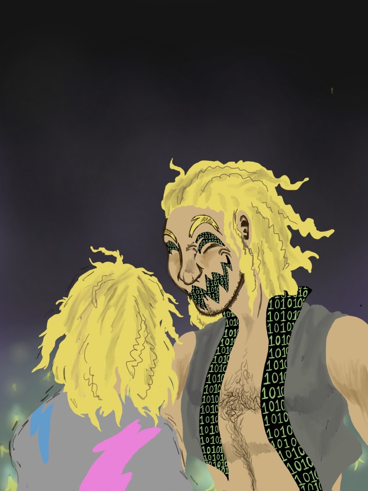 The Monkey King snapped his fingers again and I started to perceive a reel playing back memories of Grandma Marge in my head. White noise made from an ensemble of 1’s and 0’s would eat the memory of every scene after it played.