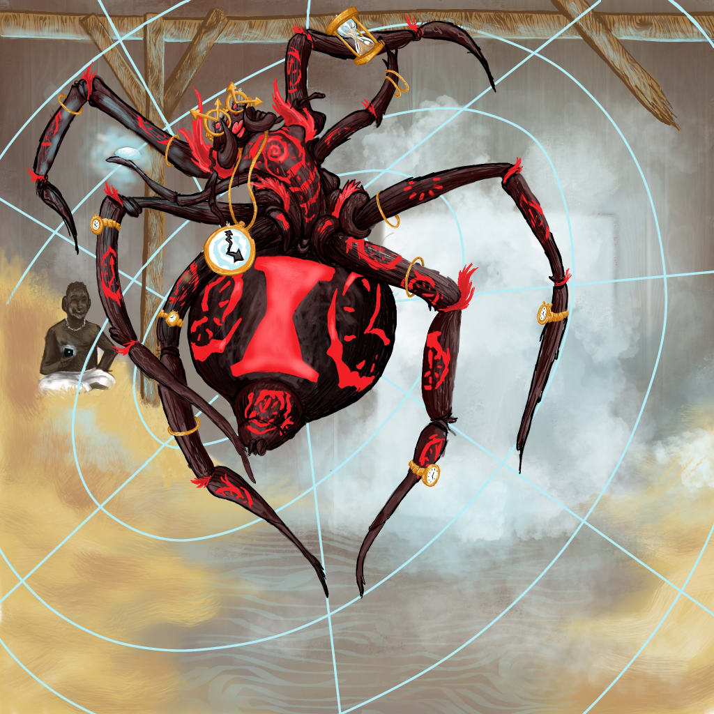 To my demise, a mammoth-sized black widow with strange markings all over its body was before me. It was about 3 times the size of a human. It had woven its web over what looked like an unquestionably old, run-down barn.