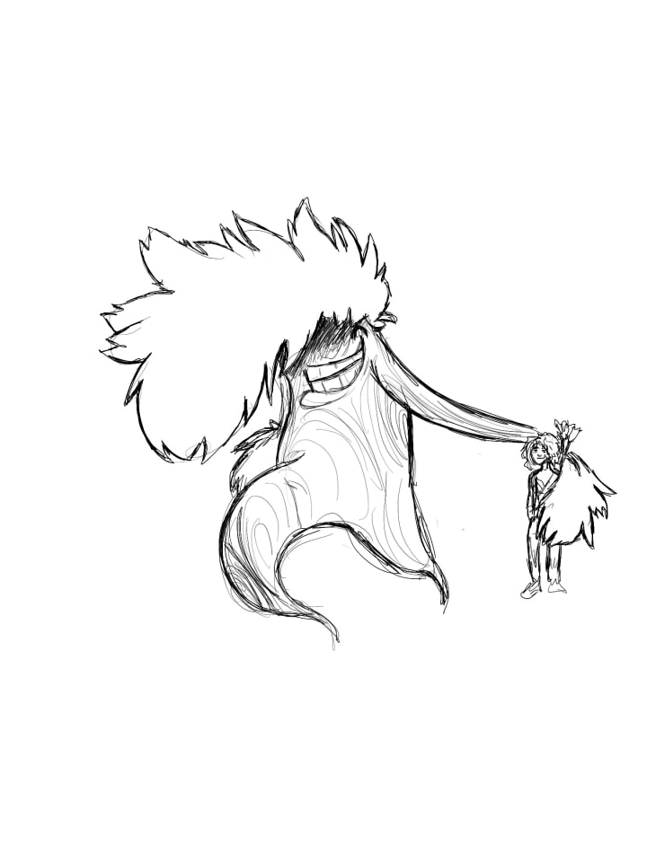 Right before she could finish that sentence a massive homunculus type of creature landed in front of us, as if a bomb dropped from the sky.
