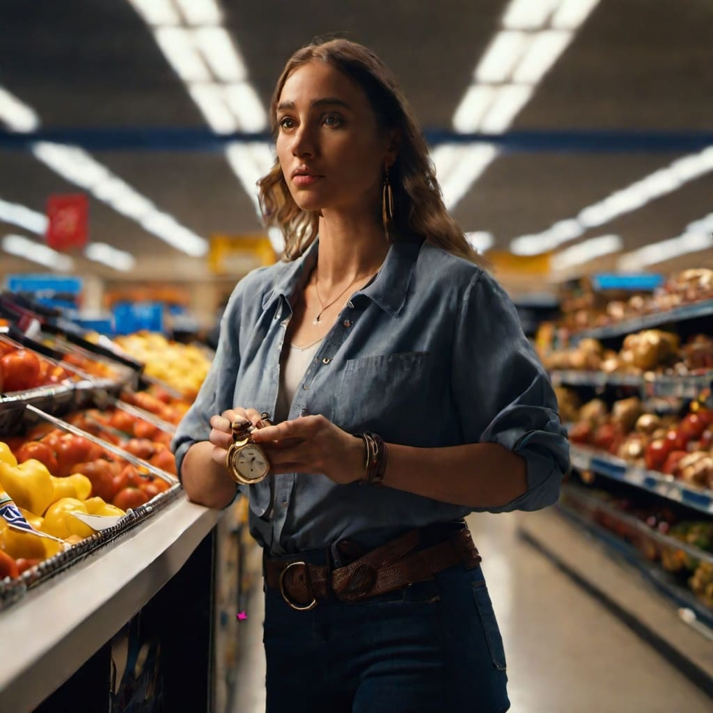 Determined to break the curse, Sarah returned to the Walmart, the return counter now an ominous threshold between the present and the past. Ms. Thompson greeted her with a knowing nod and gestured for her to proceed. As Sarah stepped forward, the air grew heavy with a sense of foreboding. She wound the pocket watch, and the world around her warped once more.
