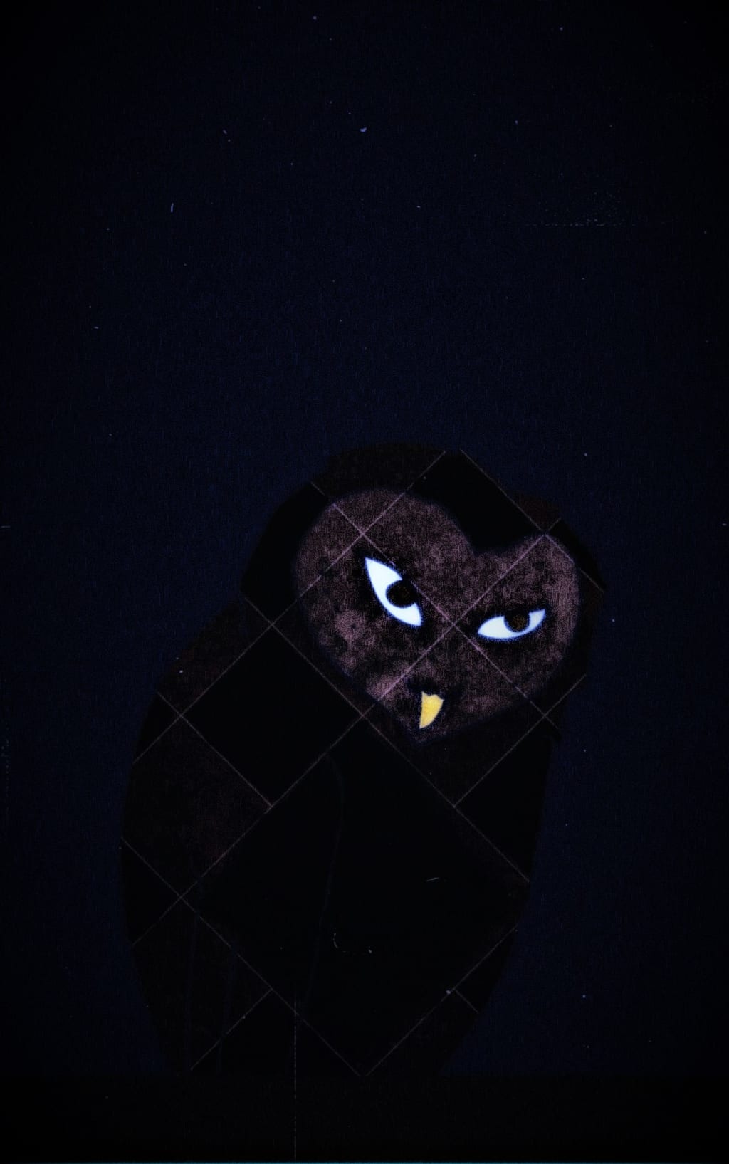 “All Hallows Eve, perched high above, out of sight, the hoot of the child’s familiar sounds through the air.”