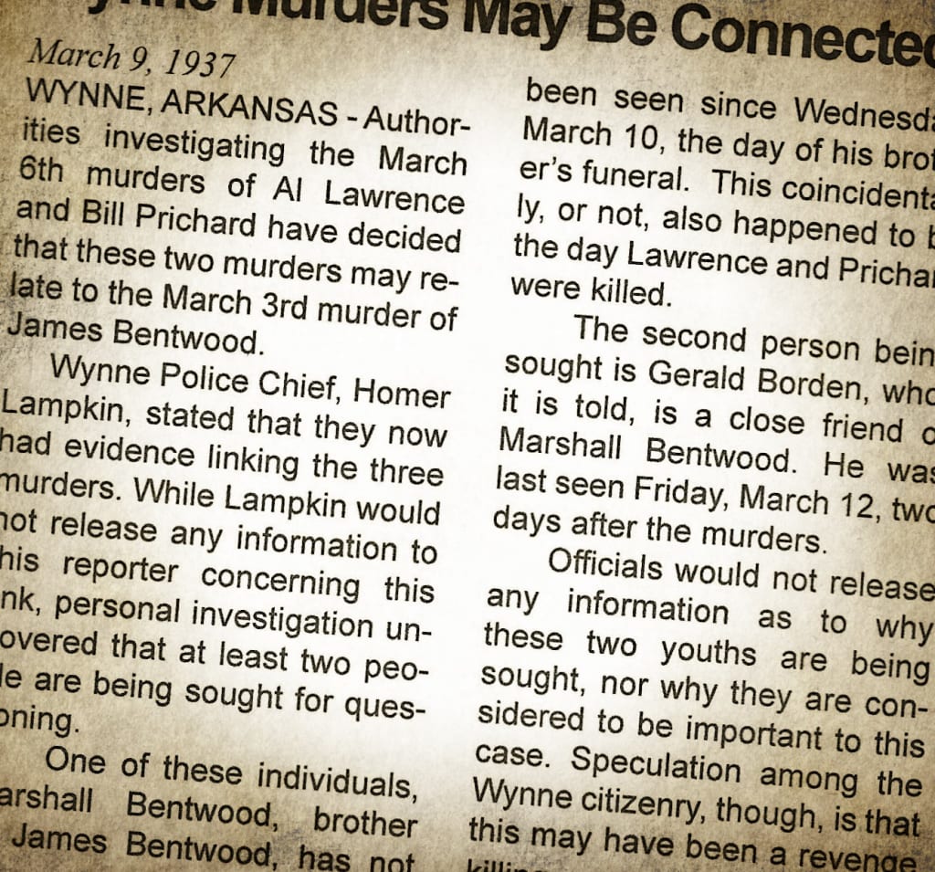 WYNNE, ARKANSAS - Authorities investigating the March 6th murders of Al Lawrence and Bill Prichard have decided that these two murders may relate to the March 3rd murder of James Bentwood.