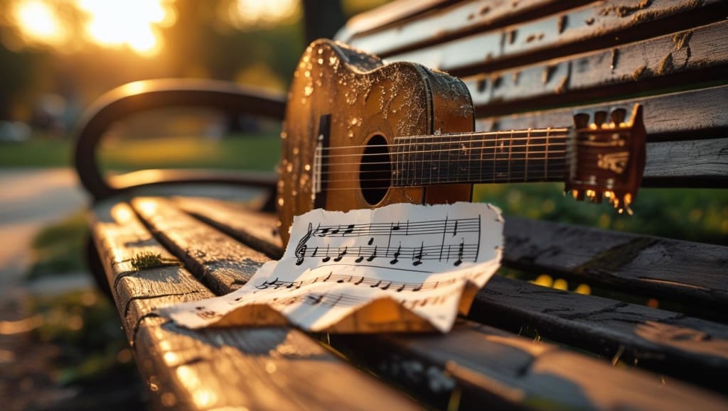 The next day, I took the guitar to the park near my place, hoping the open air would clear my head. I sat on a bench, noodling with the melody, when an older man with a gray ponytail and a worn flannel shirt sat down nearby. He was humming something, a haunting tune that wove into mine like it belonged. “Keep going,” he said, nodding at my guitar. “That’s got something.” Embarrassed but curious, I played my fragment again. He hummed along, then pulled a crumpled napkin from his pocket and jotted down a chord progression. “Try this,” he said, handing it over.