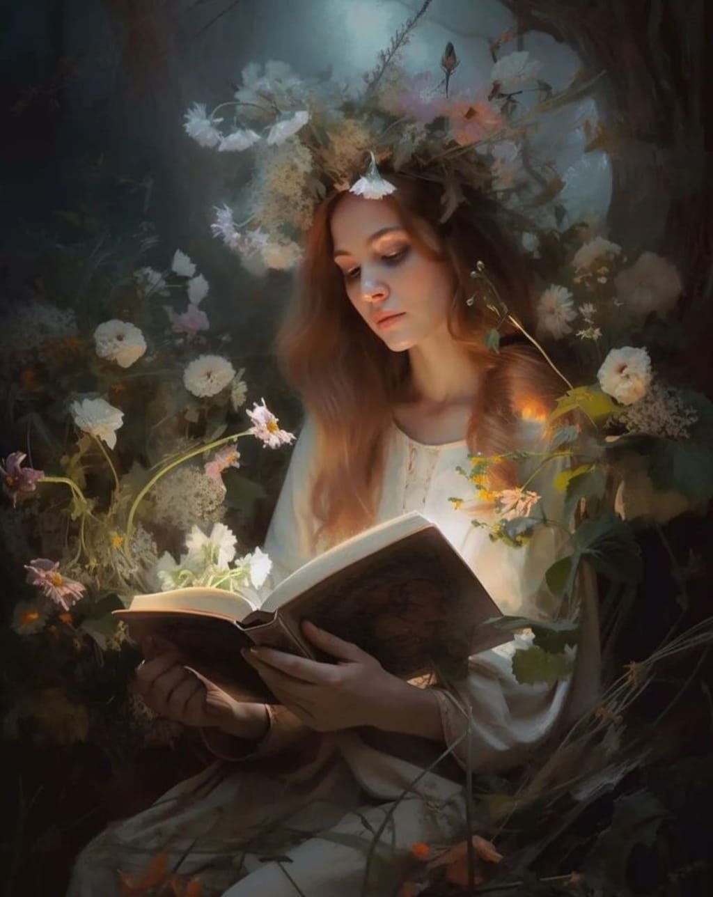 Elsie had always been bewitched by the forest that lay near her family's estate. She would often lose herself in its embrace, wandering through the trees with a book in hand, thrilled by the magic of the natural world. Her parents knew of her love for the woods, but they also knew that it was time for her to marry and continue the family's legacy. One evening, as they sat down for dinner, Elsie's father announced that he had found a suitable match for her. The son of another noble family, he was wealthy, well-educated, and would make a perfect match for their daughter. However, the news devastated Elsie. She had never even met the man her father had chosen for her, and the thought of marrying someone she did not love filled her with dread. Unable to bear the thought of a life without love, Elsie excused herself from the dinner table and ran to the forest, hoping to find solace in the familiar surroundings. Her heart pounding, she ran as fast as she could, lost in her thoughts and fears. As she ran, she noticed the beauty of the woods around her. Sunlight streamed through the leaves, casting dappled shadows on the ground. The scent of pine and earth filled the air, and the sound of birds singing was everywhere. She felt the cool breeze on her skin and the soft earth beneath her feet. It was as if the forest was calling to her, offering her a safe haven. But fate had other plans for her that night. As she ran, her foot caught on a tree root and she stumbled, hitting her head hard and falling unconscious. When she awoke, it was pitch black, with only the light of the moon to guide her. As her eyes adjusted to the darkness, she saw a figure emerging from the shadows. At first, she was startled, but as the figure drew closer, she realized that it was a boy, about her age, with dark hair and a cloak made of moss and leaves. He beckoned to her, and without thinking, Elsie followed him deep into the forest. As they walked, Elsie noticed the richness of the forest, the subtle scents of flowers and earth mingling in the air. She saw the beauty of the trees, the way the moonlight shone through the leaves, creating a mosaic of light and shadow on the ground. She felt the cool breeze on her skin and the soft earth beneath her feet. It was as if the forest was alive, and it was inviting her in. After what felt like hours, they came to a clearing. In the centre of the clearing was a small cottage, surrounded by flowers and herbs. The air was thick with the fragrance of wildflowers, and the sound of a nearby stream could be heard in the distance. The boy led Elsie inside, and as she looked around, she saw that the cottage was filled with books. Books of every kind, from every corner of the world. The boy smiled at her. "I knew you would love it," he said. Elsie was confused. "How did you know?" she asked. The boy's smile widened. "Because I've been watching you. I know you love books, and I know you don't want to marry someone you don't love." Elsie felt her cheeks flush, but she was also intrigued by this mysterious boy who seemed to know her so well. The boy's name was Aiden, and as Elsie spent time with him, she realized that he was more than just a boy. He was a spirit of the woods, a creature who was one with the forest. He showed her things she had never seen before and taught her things she had never known. They spent their days exploring the woods, reading books, and talking about their dreams. The forest was alive with the sound of birds singing, and the rustling of leaves as the wind blew through the trees. As Elsie spent more time with Aiden, she began to understand that sometimes, the greatest love of all is the love of oneself. She learned that it was possible to find happiness and fulfilment without sacrificing her own desires and dreams. She knew that she had to return to her family, but the time she had spent in the woods had changed her forever. She had discovered a new sense of purpose, and she was determined to live her life on her own terms, free from the constraints of society and expectations.