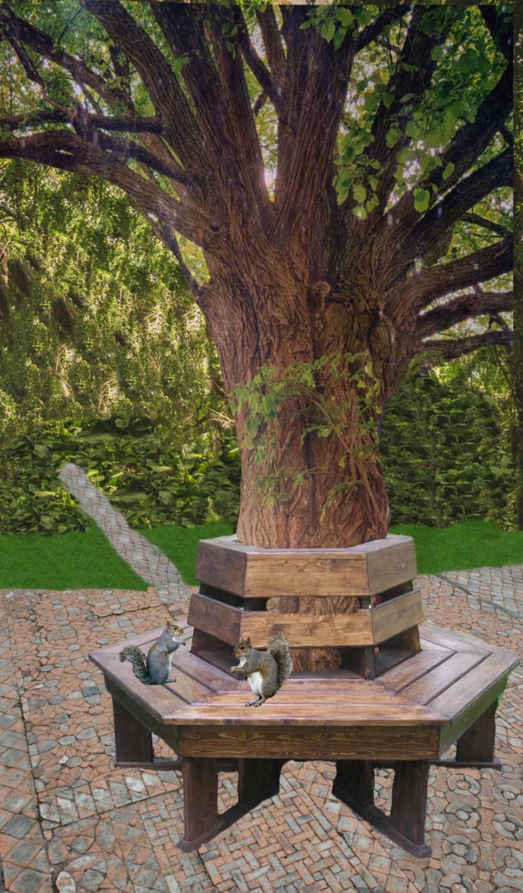 To the right of the tree, there was another area with a fence around it. It was a white rail fence made entirely out of four-by-four posts and rails. There was an open gate on the side facing the path. The only flowers in that area were roses. In fact, other than the round bench in the middle, the only thing that was in there were roses.