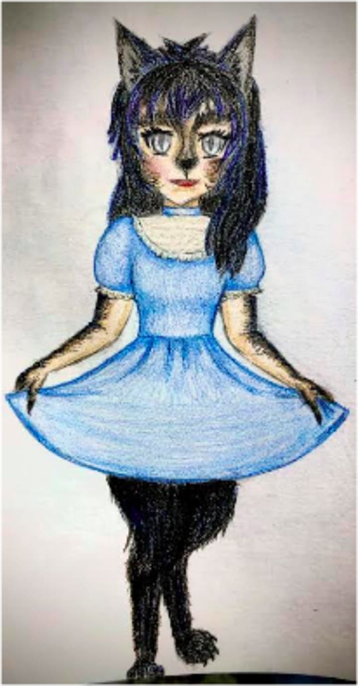 She held out her hands– two paws covered with fur and claws– and looked down at her dress, a pretty periwinkle blue with even a bit of lace at the collar. Not that anyone would notice. Not with her two furry legs that helped her to stand on her own two feet, nor with her furry face that tangled with the strands of her rich, dark hair.