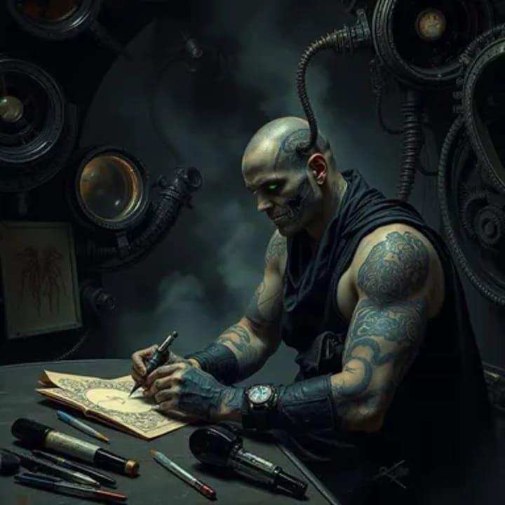 Once you have crossed over into this alternate universe...It will be far too late...for you have stepped into a twilight zone...Those who enter, never leaves the den of "The Tattoo Master of the Damned". Here, ink that stains the soul and a story unfolds in layers: skin, shadow, and cosmic dread. A chilling horror story, unfolding over one night in the cursed den of the Master of the Damned.