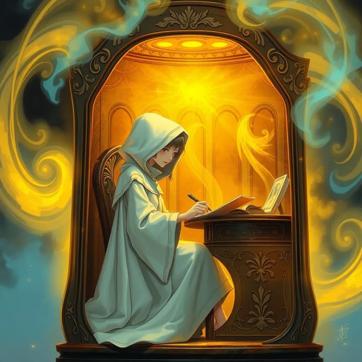 On the third night, the Stay Awake Crystal Ball glowed ominously, it had been connected to the hidden duplicate crystal ball inside the Emporium, and there, all cloaked and unrecognizable, was the stealer of stories. The figure glanced around furtively, tip-toeing in true cartoon motions as he/she despoiled the sanctity of the magical place.