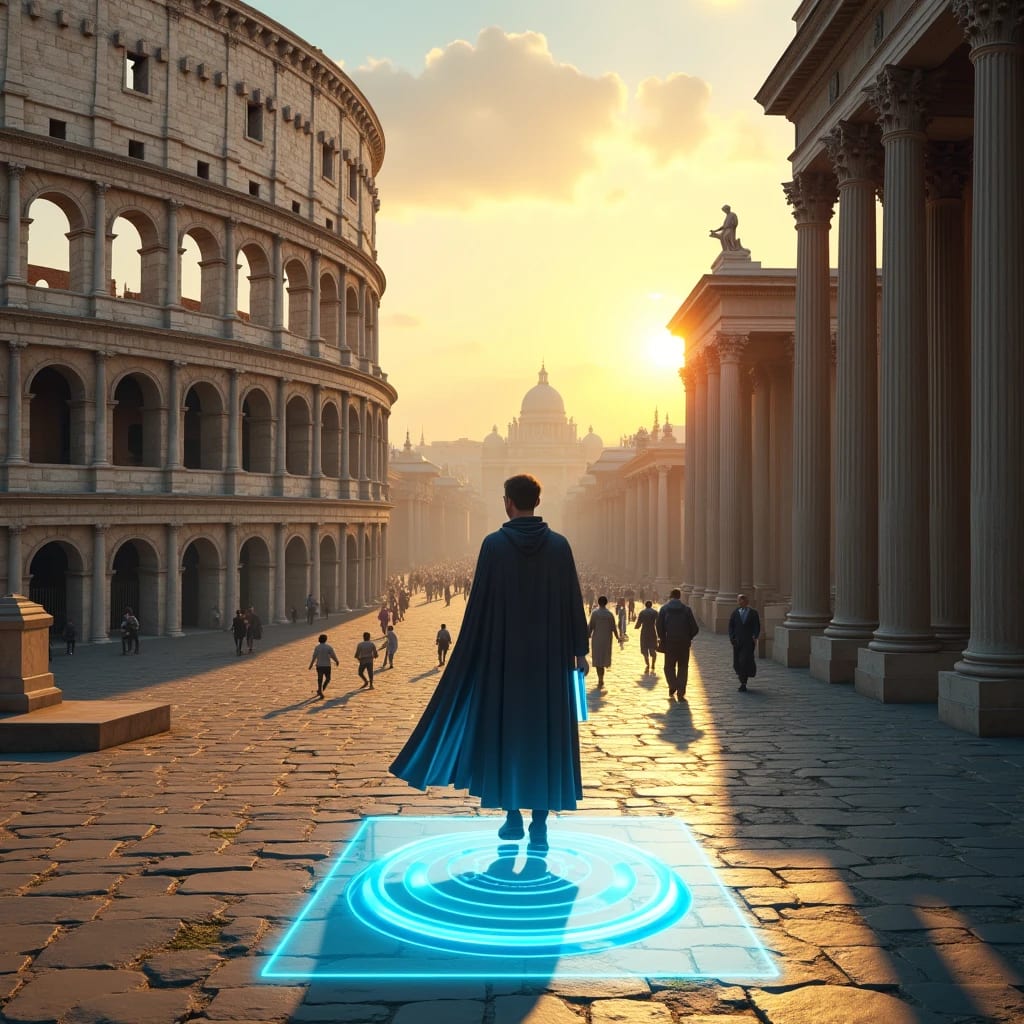 With no time left and his cover blown, Elian activated the return beacon by pressing the base of his thumb. As he made his way back to the portal site near the Tiber River, he paused to watch the sunrise. The city glowed—temples shining like fire, the Forum stirring to life, birds soaring over the rooftops of eternity.
