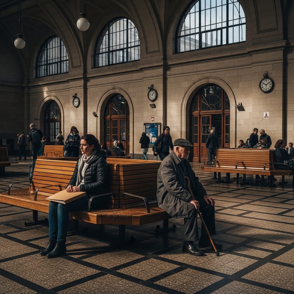 She checked her phone for the tenth time. No service. Typical. Around her, other passengers grumbled, paced, or sat in silence with vacant stares. A little boy tugged on his mother’s sleeve, pointing at a pigeon pecking at crumbs. Somewhere, a loudspeaker crackled with static, but no announcement followed.