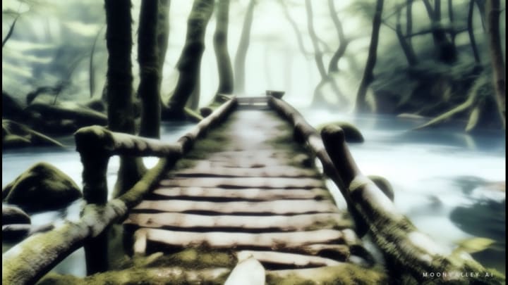 On one camera-ready, moonlit evening, Sandy found herself facing an old bridge spanning a rapid river; the shining waters beneath appeared ethereal in the luminescence of the moon. The ultimate hint hinted at a hidden treasure beyond this valley. Given its dilapidated state and unsafe condition, she elected to cross via the river bed itself.