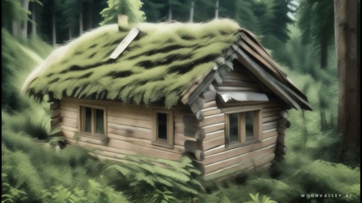 Mustering all bravery, she delved into the frozen waters only to emerge on the other end and find a derelict log house hidden amidst the foliage.
