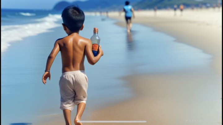 And with that, Sandy reached into her pocket and handed the young boy a small, weathered bottle, just like the one she had found all those years ago. Inside, he discovered a rolled-up piece of parchment, yellowed with age.