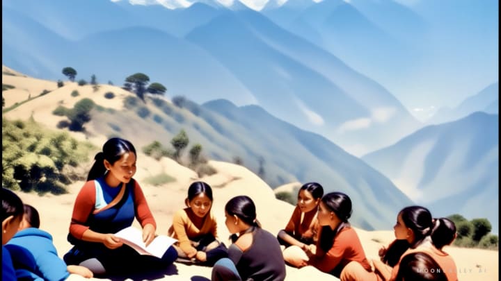 She lived in a quaint rural village, nestled under towering mountain ranges where the crisp wind whispered tales of undiscovered secrets. Her days were filled with cycling expeditions around her village and mountain base, accumulating stones and wildflowers for her mom while daydreaming about the mysteries of the world.