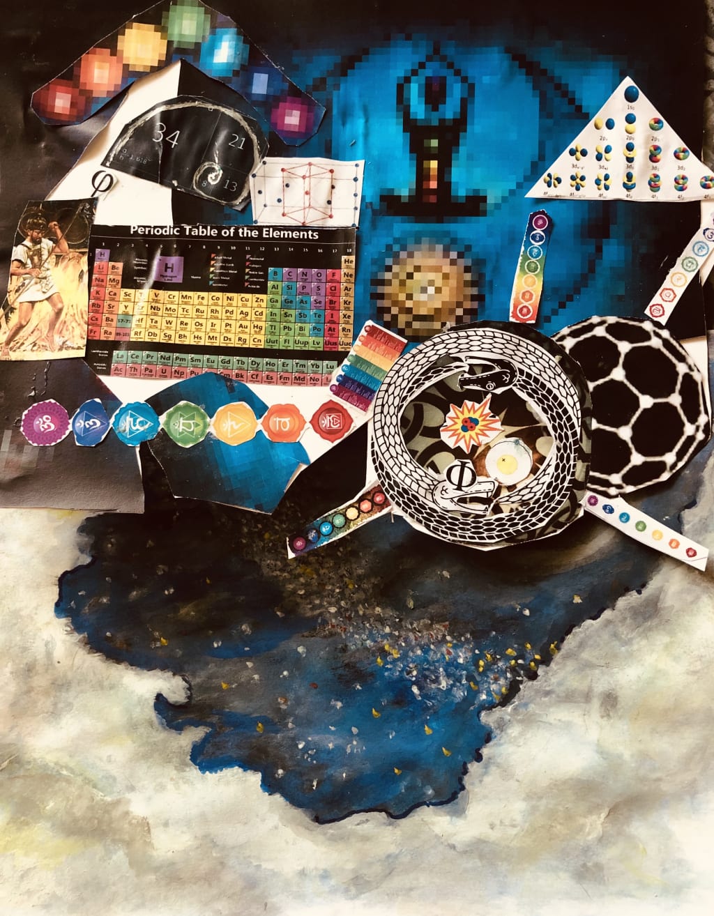 In the world of physical chemistry, electrons that make ions and photons run the show. They create all or none possibilities and control the light glow. Here Phi, the golden mean, appears in the middle between extremes. When capitalized phi looks like the reptile’s eye Φ. In lowercase, phi φ appears as Poseidon’s trident. Phi makes a scaled dragon’s curve with infinite dividents.