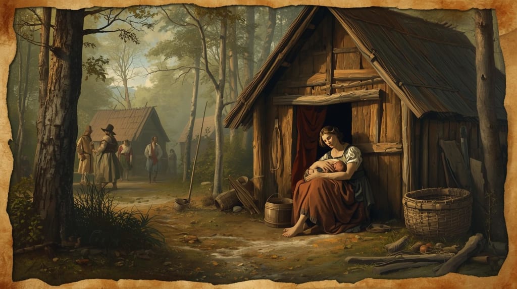 The journey was perilous. After months at sea, they arrived in the summer heat to find the earlier colony’s remains — decaying buildings, scattered bones, and unsettling silence. (A small group of English settlers, including John White, disembarking onto a wild, overgrown beach on Roanoke Island, discovering the decaying remains of a previous settlement – broken fences, a collapsed hut, and scattered, ominous bones. a full-frame medieval-style scene without any borders, decorations, or ornamental framing. The image should be painted in the style of a 14th-century European historical artwork, using slightly flattened perspective and hand-painted brush textures. Avoid illuminated manuscript layouts or frames. Use aged, parchment-toned lighting with earthy colors like faded reds, ochre, moss green, and brown. The overall look should feel cinematic, ancient, and handcrafted — as if it’s a realistic frame from an old historical film or storybook brought to life.) Despite the grim start, White encouraged his people to rebuild. The colonists began constructing houses, planting crops, and forming a fragile relationship with the local tribes. (English settlers and Native Americans interacting cautiously, perhaps trading or observing each other, against a backdrop of newly built wooden colonial houses and cleared farmland on Roanoke Island. a full-frame medieval-style scene without any borders, decorations, or ornamental framing. The image should be painted in the style of a 14th-century European historical artwork, using slightly flattened perspective and hand-painted brush textures. Avoid illuminated manuscript layouts or frames. Use aged, parchment-toned lighting with earthy colors like faded reds, ochre, moss green, and brown. The overall look should feel cinematic, ancient, and handcrafted — as if it’s a realistic frame from an old historical film or storybook brought to life.) Among them was White’s daughter, Eleanor Dare, who soon gave birth to the first English child born in the New World — Virginia Dare. Her birth filled the settlers with renewed hope. (Eleanor Dare, a young English woman, holding a newborn baby (Virginia Dare) in a simple wooden colonial home, surrounded by hopeful-looking settlers. a full-frame medieval-style scene without any borders, decorations, or ornamental framing. The image should be painted in the style of a 14th-century European historical artwork, using slightly flattened perspective and hand-painted brush textures. Avoid illuminated manuscript layouts or frames. Use aged, parchment-toned lighting with earthy colors like faded reds, ochre, moss green, and brown. The overall look should feel cinematic, ancient, and handcrafted — as if it’s a realistic frame from an old historical film or storybook brought to life.) For a brief moment, the colony seemed destined for success.