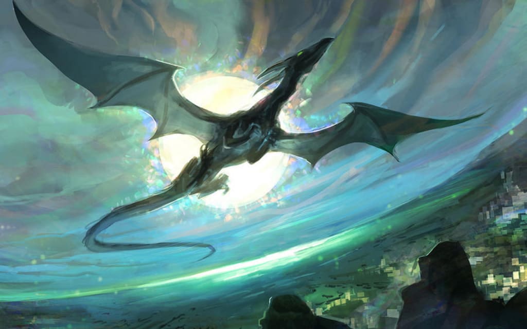 The young dragon Jih’Callas, cloud dragon of a hundred and more summers, Sovereign of the Ebony Woods and Master of the Sunset Spire, soared gracefully through the moonlit skies. The land below once belonged to his sire, the awe-inspiring and often terrifying Belloton Skybreaker. But since ascending to the Sunset Spire himself, Jih’Callas had chosen to try and rule his vast holdings with something more like benevolence. He was aware that there were many who coveted his treasure, such as the pair of likable dwarves that had traded with him just a few moons ago. He also knew that his sire’s past roasting of a couple dozen of the more uninvited thieves had prevented any recent predations.