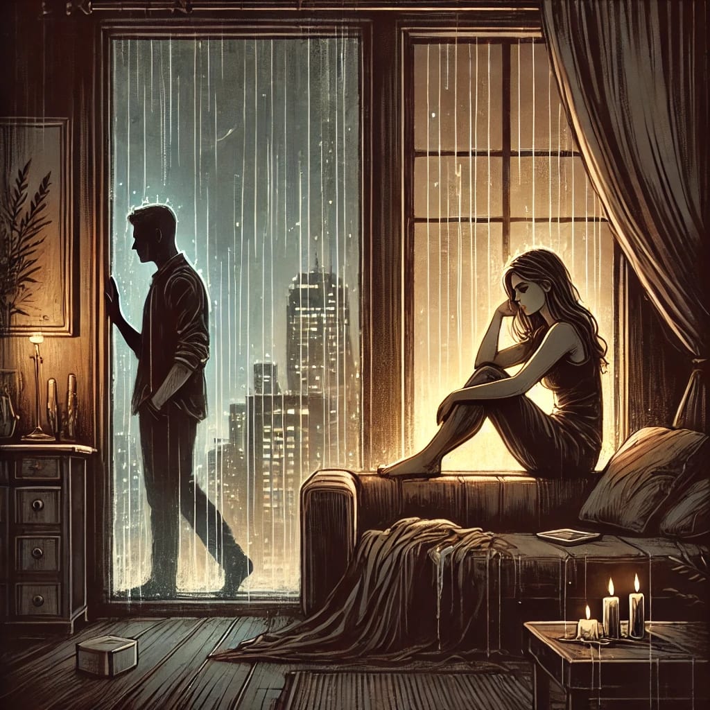 The air was heavy in the apartment, even though the windows were open, letting in the soft evening breeze. She sat on the edge of the couch, her hands clasped tightly in her lap. Across the room, he stood by the window, staring out into the city lights, his reflection a ghost against the glass. Neither spoke, but the silence wasn’t empty—it was loaded with all the words they were too afraid to say.