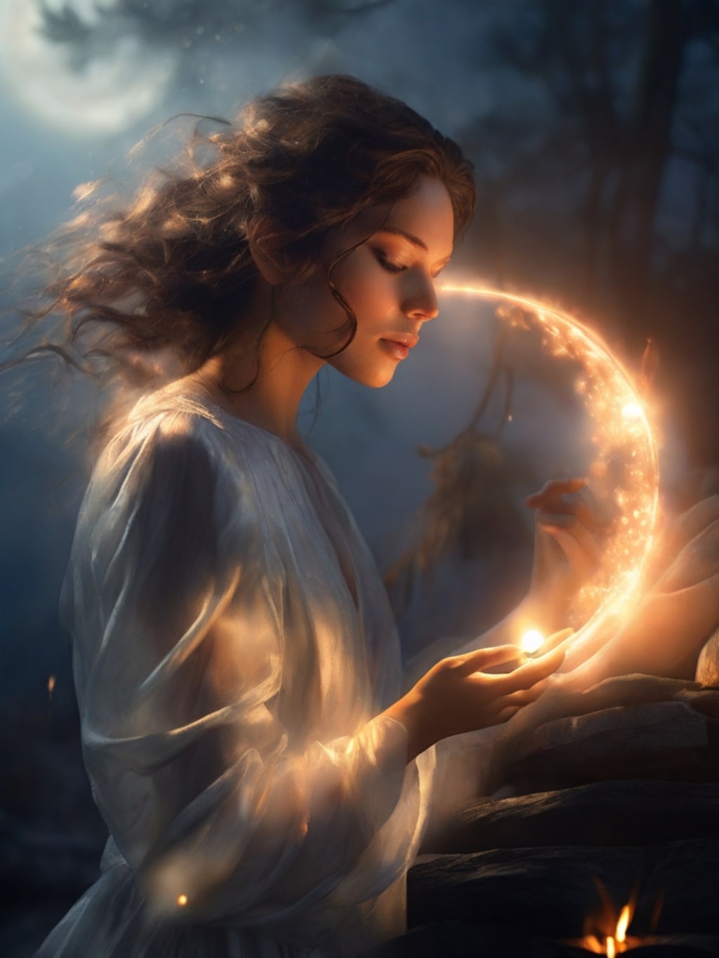 The moonlight spilt into the cave, casting a soft glow on her face. After a few long while, it was just two minutes later I saw her smile. Hand in hand, we stepped out into the moonlit night