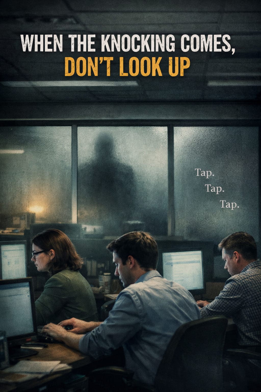 A shape crossed the frosted glass wall at the far end of the office. Not a clear silhouette, just a distortion, like heat rising from asphalt.