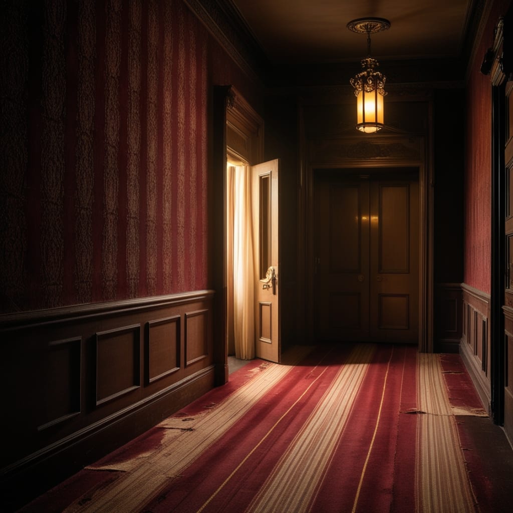 The hotel was old — that much was obvious. Velvet wallpaper peeled at the edges, and a scent clung to the corridors like burnt dust and something older. Maybe mothballs. Maybe something worse.