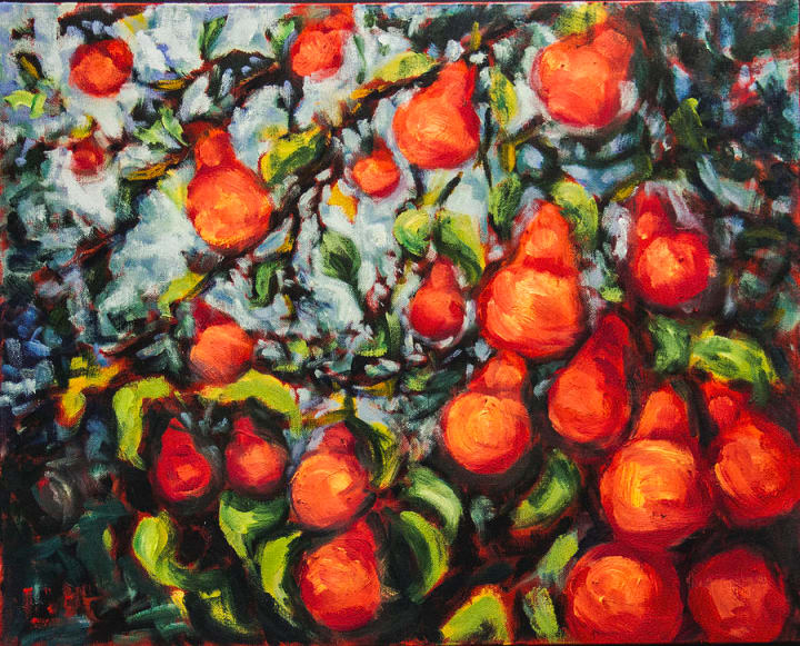 "He told me to pick a pear, but I didn't really want to choose between red or green, so I grabbed a red one first and a green one second. Grandpa chuckled and told me I never was very good at making decisions..."