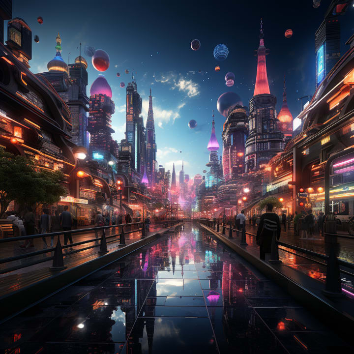 Driven by an insatiable curiosity, I ventured out into the streets, my metallic feet echoing against the futuristic pavement. The cityscape stretched before me, filled with towering structures that seemed to touch the sky. Hovering vehicles glided effortlessly through the air, while holographic billboards illuminated the surroundings with vibrant colors and captivating advertisements.