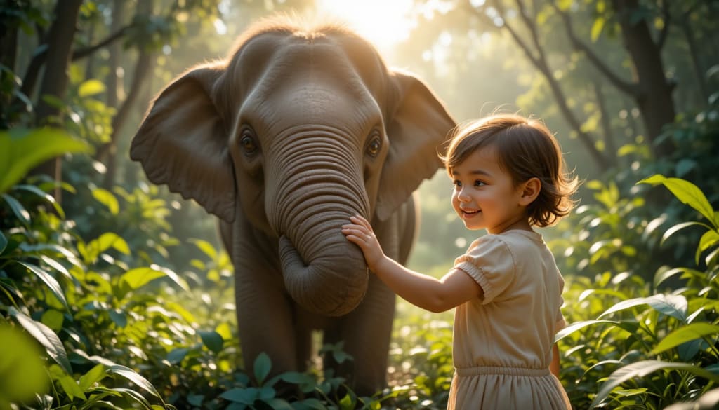 The elephant noticed Arin almost immediately. It lifted its head slightly, its ears relaxed rather than flared. Arin froze, remembering the instructions he had learned from the observers. He remained still and avoided sudden movement. The elephant did not show signs of distress. Instead, it took one slow step forward, testing the boy’s presence.