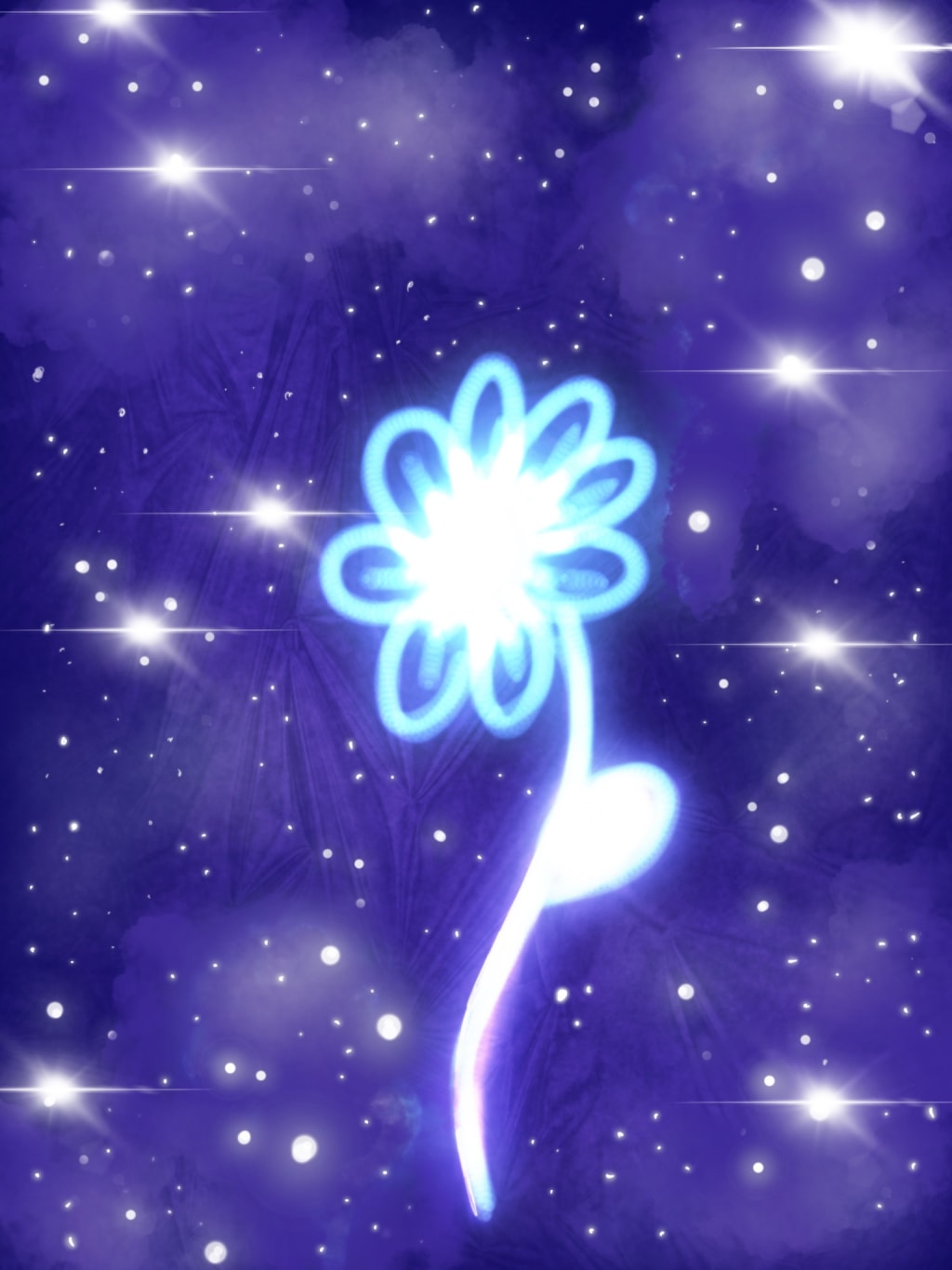 I've loved her for a thousand years now. She's small compared to the bold lights drifting about that purple sphere. I have always noticed her in the distance, but I don't think she's ever noticed me. I don't blame her. How could she see me in the distance when she is always surrounded by so many shining suns? I wish she would notice me just once before I dim, but my light is minuscule compared to theirs. My light shines in pale silver rays, while theirs shines in gold. But she is like me. Except she doesn't shine she glows. Our colors match each other perfectly. Does she not see we are meant to be together?