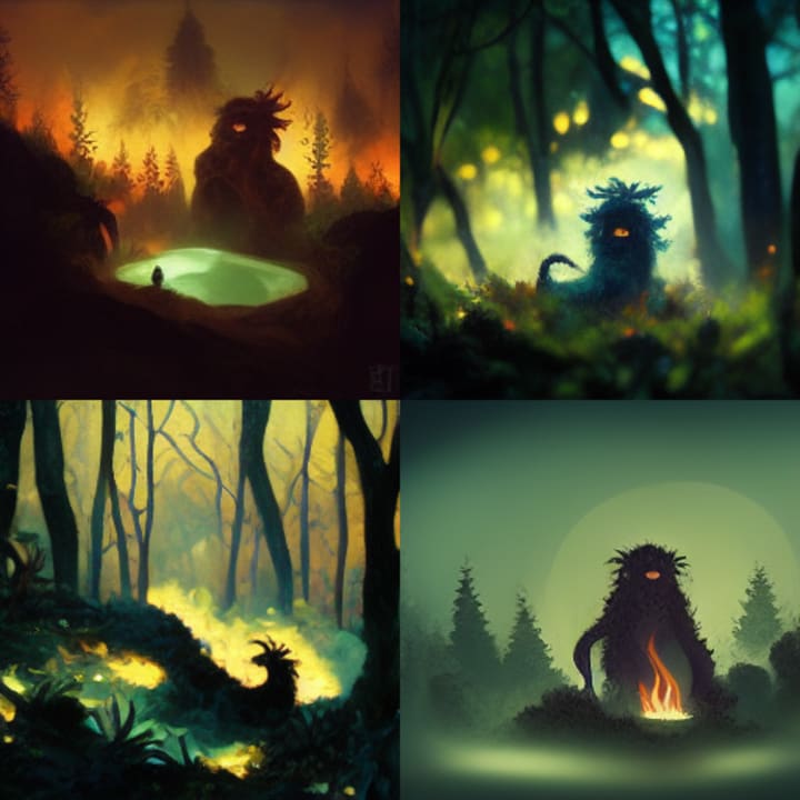 Ugg and his tribe were no match for the dragon, and they were forced to flee for their lives. As Ugg was running, he stumbled upon a dense thicket of bushes. Without hesitation, he dove into the bushes, hoping to evade the dragon's wrath. But, as fate would have it, the dragon spotted him and breathed a searing blast of fire right into the thicket.