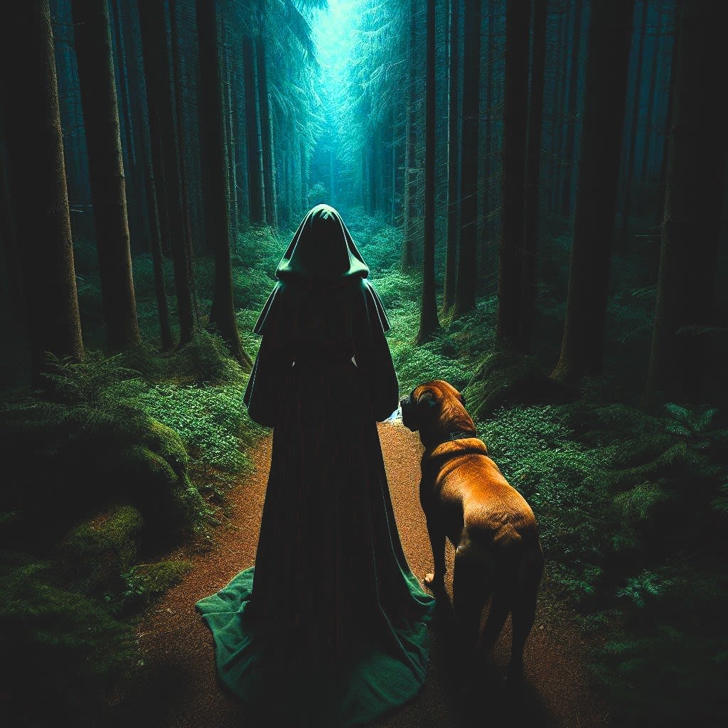I smile at that last salvo, the images of a lusty, crowned fool ogling an innocent and the stench of mead and burned meat that came with it. I stand up. The stupidity of men is not my responsibility. I stroke Cuidiú’s back. He checks my eyes again, whines softly. I nod and he advances. He is not tentative but he is prudent. He wags his tail a bit to bolster my spirits. I actually chuckle. We advance a little, into their dark assembly.