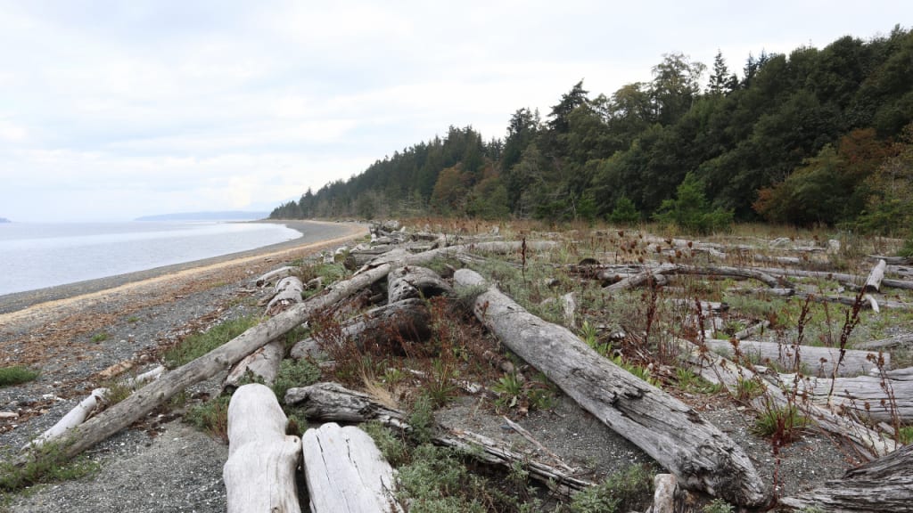 A canopy of Arbutus trees lined the narrow path to the beach. Their hard, gnarled branches reached towards each other like outstretched hands. At the end of the path, a long wooden staircase led them down to the beach where they were surrounded by rugged bluffs and scenic views of the Coast Mountains.
