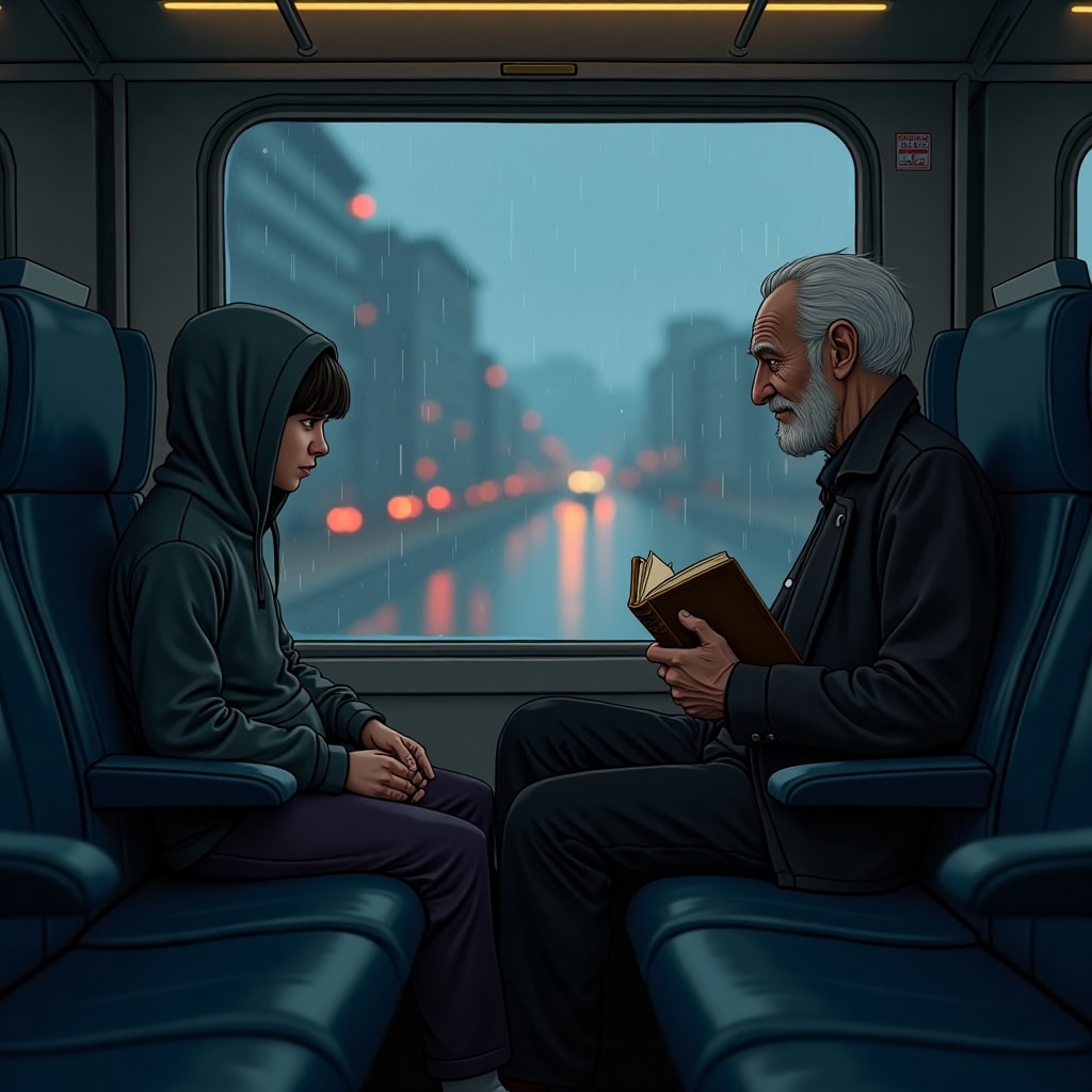 We didn’t speak for a while. The train moved in that smooth, rhythmic way that almost rocks you to sleep. Outside, streetlights blinked on, casting reflections like ghosts on the windowpane.