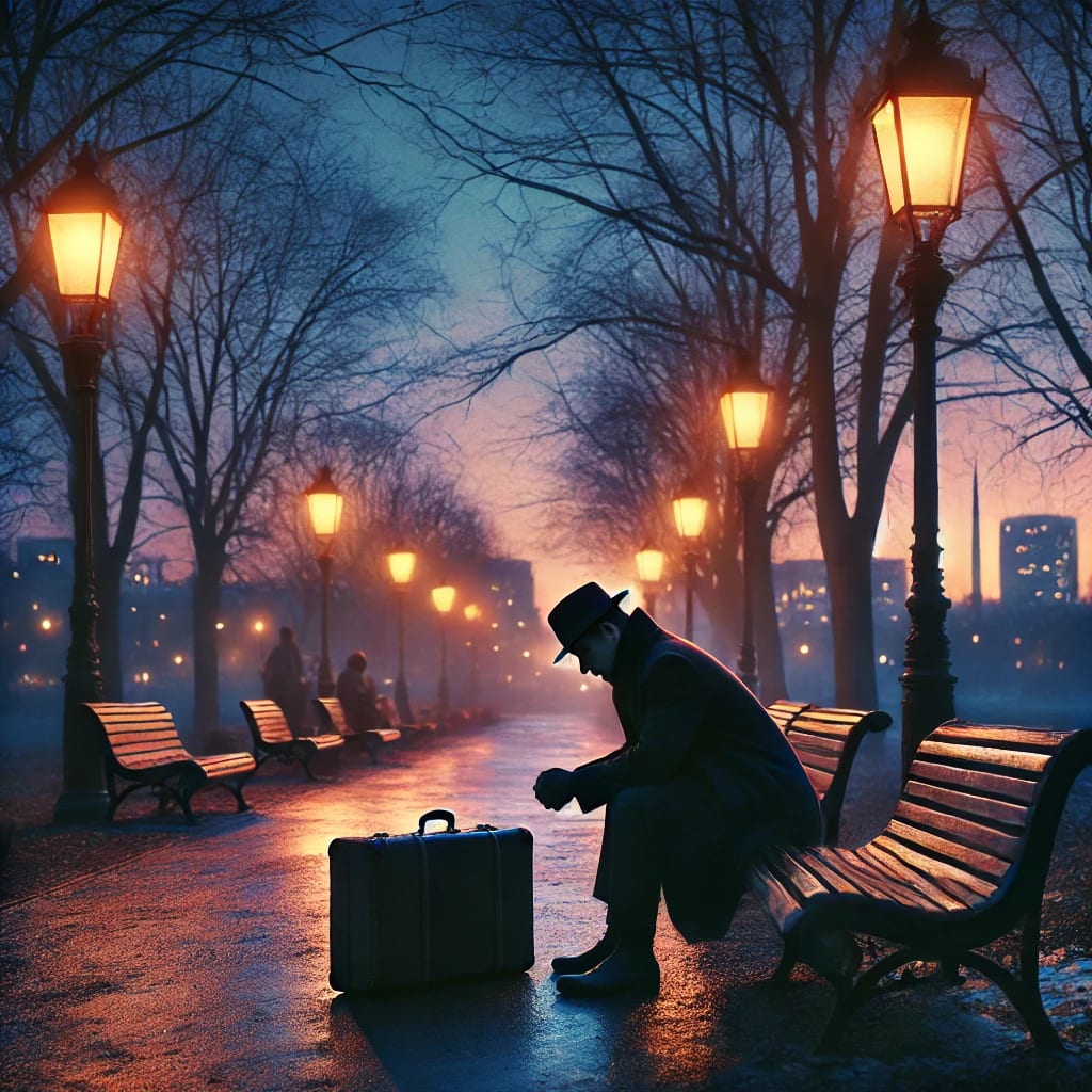 The city lights flickered like a thousand silent witnesses, casting long shadows over the cobblestone streets. It was a cold evening, the kind where the chill seeped through your coat and made its way into your bones. She stood at the edge of the park, where the trees whispered secrets in the wind, and the old lamp posts lined the pathway like guardians of forgotten promises.