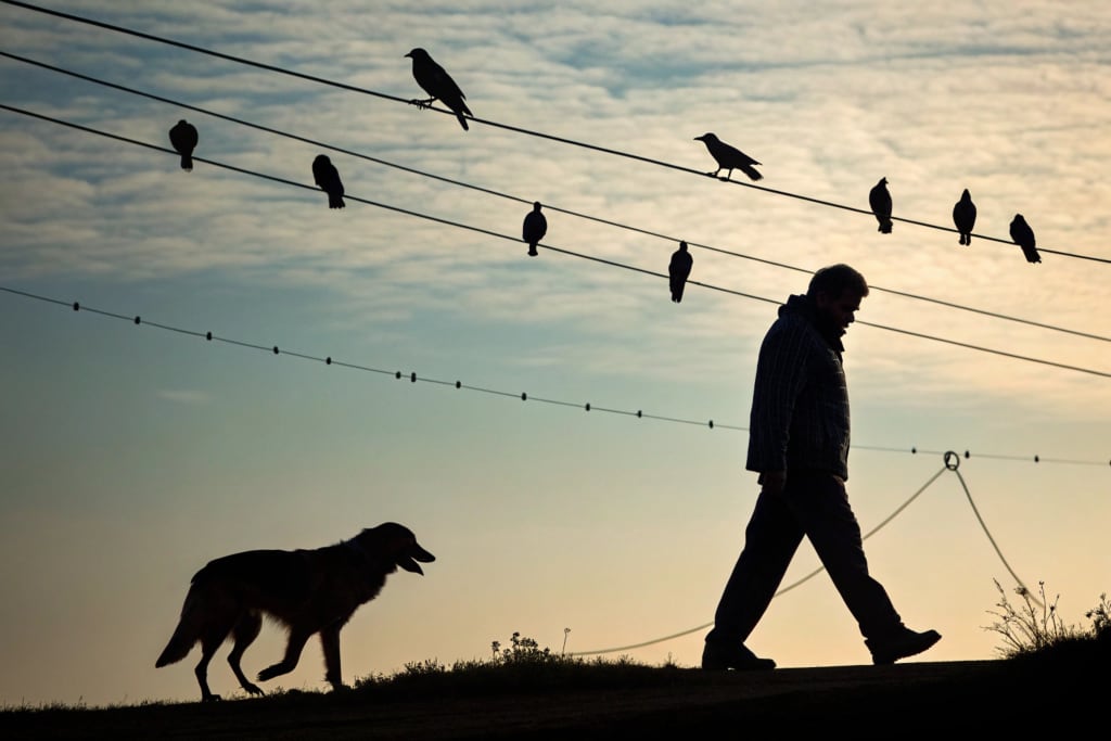 John trudged home through his former industrial town, now quiet and sterile, a ghost of its coal-dominated past. Once an ambitious politician, he now assembled wind turbines on a monotonous factory line. He despised the city, his work, and the monotony that enveloped every street. As he walked, four crows perched on a utility pole caught his attention. One took flight, immediately replaced by another. John’s eyes flicked to the sky, not in fear, but calculation.