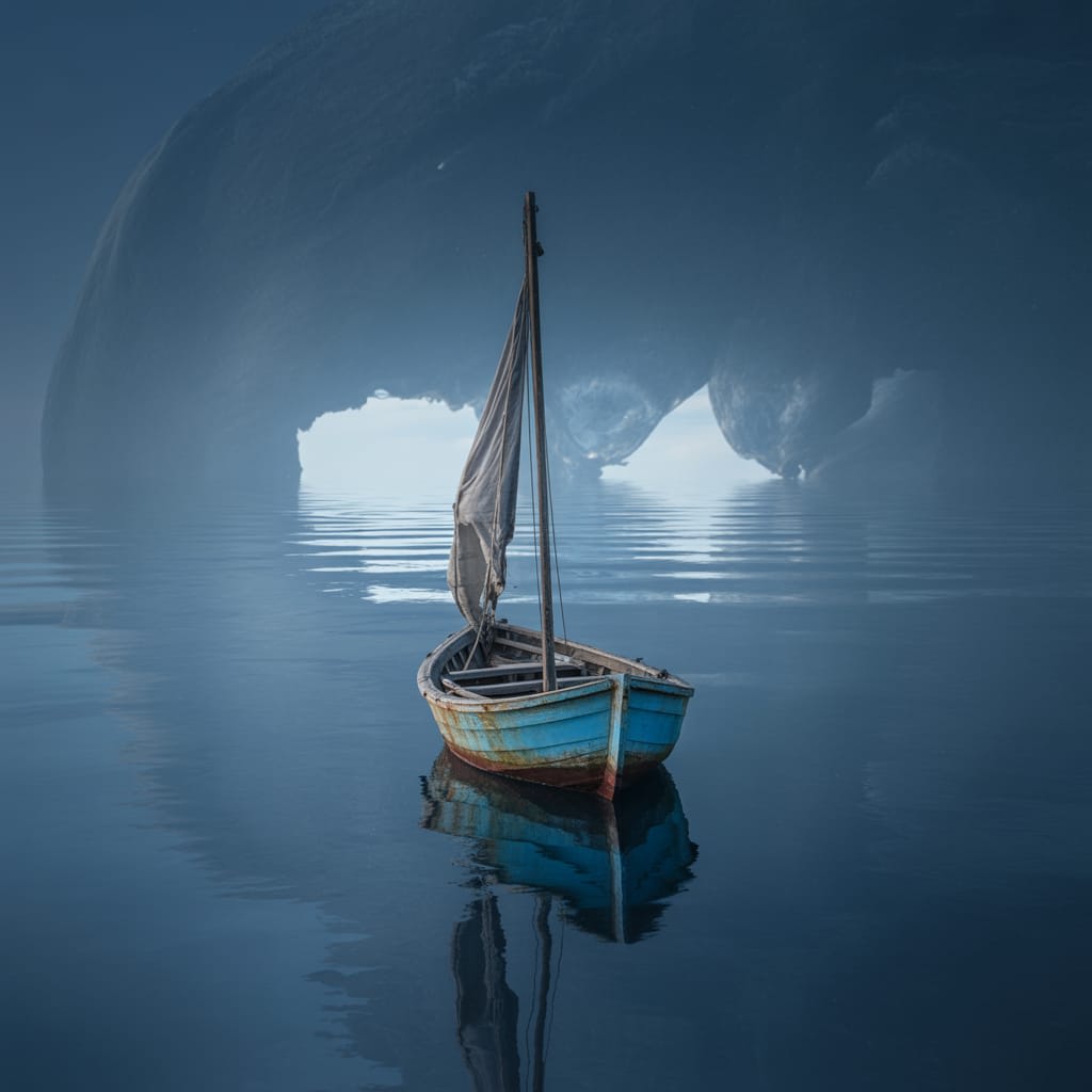 On the fifth day, we reached the point. The water here was darker, as if the light itself refused to sink.