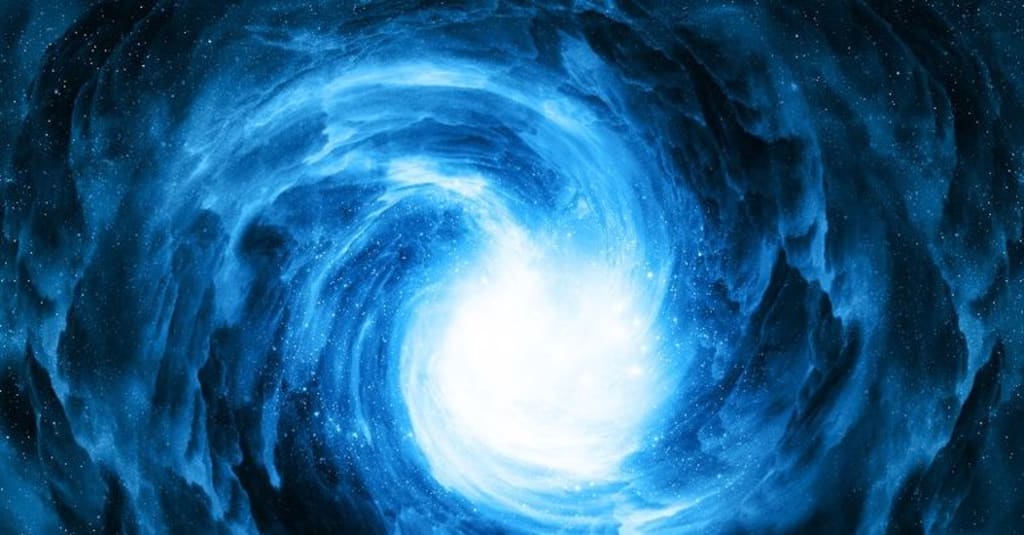 The craft above begins to shoot several electrifying beams, striking and disintegrating each bystander that falls into its trap. "TAKE COVER!" I yell while running and dodging the laser show. I run to a nearby fountain and catch my breath. That is when I began to feel a tug on my necklace. The jade started to glow and vibrate. Behind the fountain, I noticed a glowing cobalt orb floating gracefully. My necklace seemed to be magnetically attracted to this Orb. When I held the jade crystal up to the mystifying phenomenon, it began opening into a violet whirlpool. An unearthly whistle emanated from what looked like a portal to another Universe! Trusting my heart, I stepped closer, leaving all of the earthly chaos behind. I stuck my hand out to grab my sister, but she hesitated. "I-- I can't do this. I'm so overwhelmed and confused right now," she told me, her eyes filled with worry and concern.