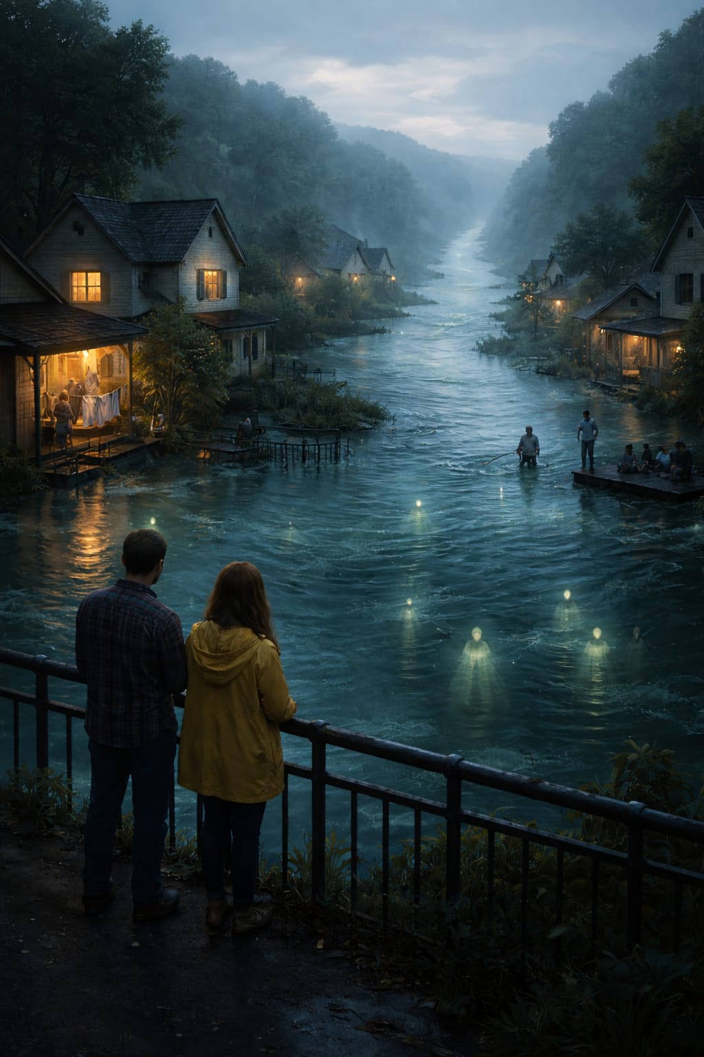 At night, when the town slept, the river grew louder. It wasn’t rushing, exactly. It was breathing. A slow, wet inhale that seemed to come from under every floorboard. Windows rattled. Picture frames tilted, just enough to be noticed and then righted in the morning.